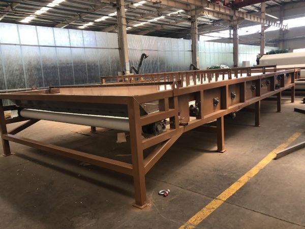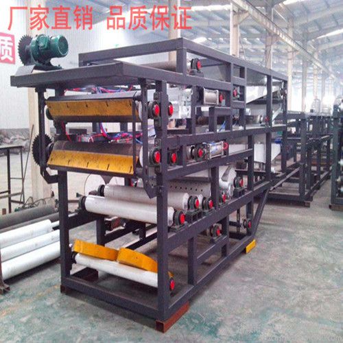 使用带式泥浆压滤机泥浆经絮凝,重力脱水,低压脱水,高压脱水后,泥饼随滤带运行卸料辊时落下.与其它种类的过滤机相比,具有连续运转,产量大,结构简单,效率高,噪音小能耗低等特点.
